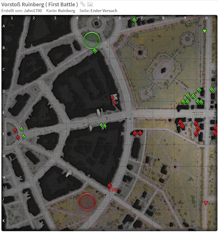 | Unser Pen-Kurs Defender(dank Dir Jan): Unterwanne: ca. 220mm effektiv(gelb) Oberwanne: ca. 330mm effektiv(lila) Turmfront: ca. 440mm effektiv(rot) Turmluken: ca. 155mm effektiv(grün) Die Chance mit einer Kanone mit durchschnittlicher Pen der AP-Munition von 225mm(z.B. IS-3) an der Unterwanne des Defenders durchzuschlagen, liegt nur knap höher als 50%, wenn der Defender gerade und auf der selben Höhe vor einem steht. (Quelle: tanks.gg http://tanks.gg/tank/defender) |